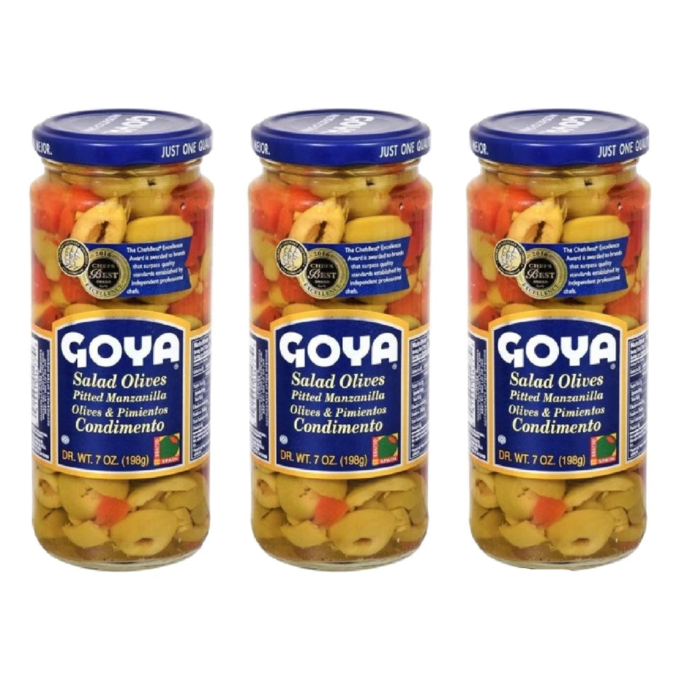 Goya Foods Salad Olives Pitted Manzanilla with Pimientos 7oz (3 Pack)