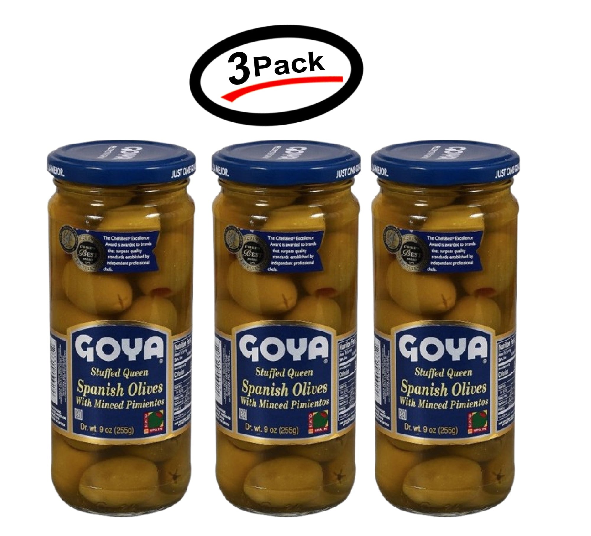 You will get 3 (Three) Pack = 3 Pcs Goya Stuffed Queen Spanish Olives 9 oz.