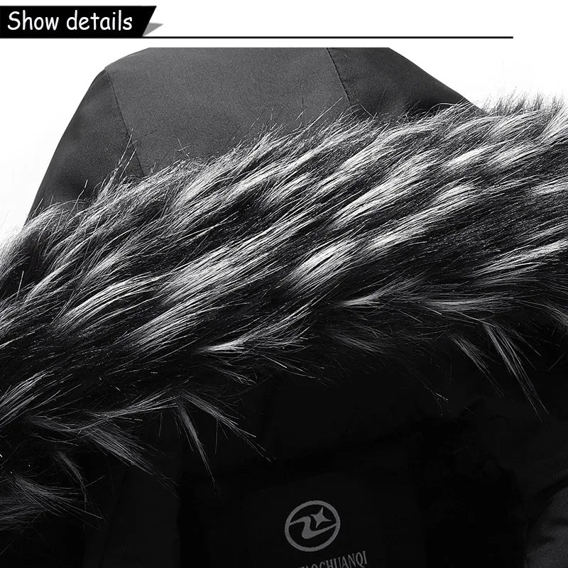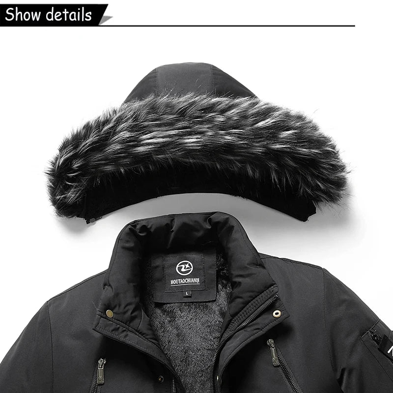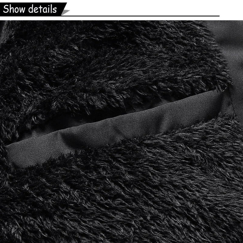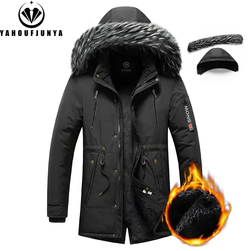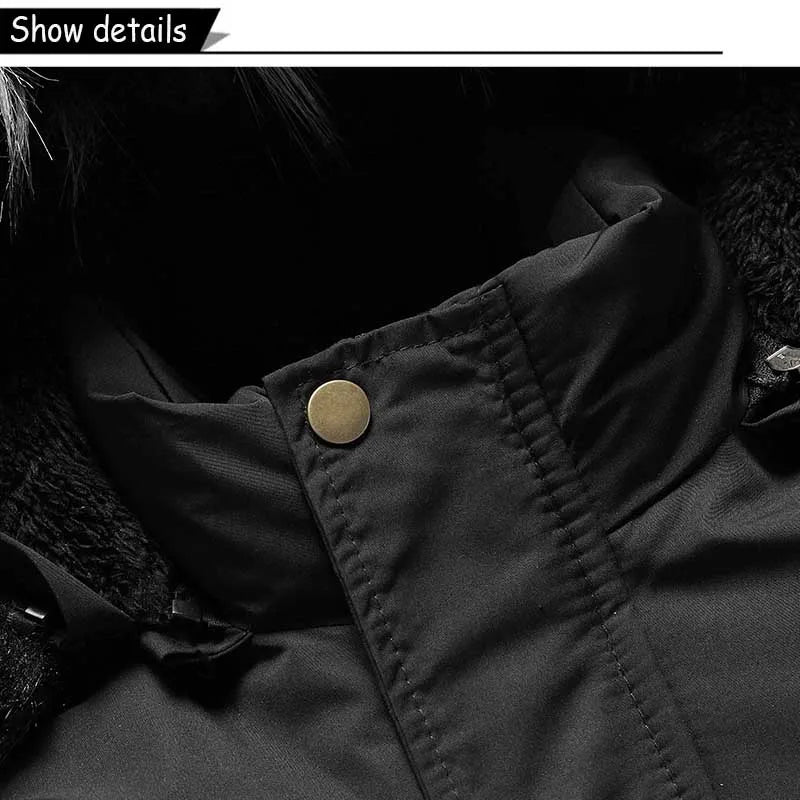 Men's Windproof Fleece Warm Detachable Hooded Parka Winter Jacket Solid Zipper Coat 6XL