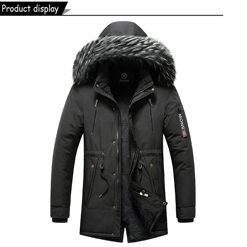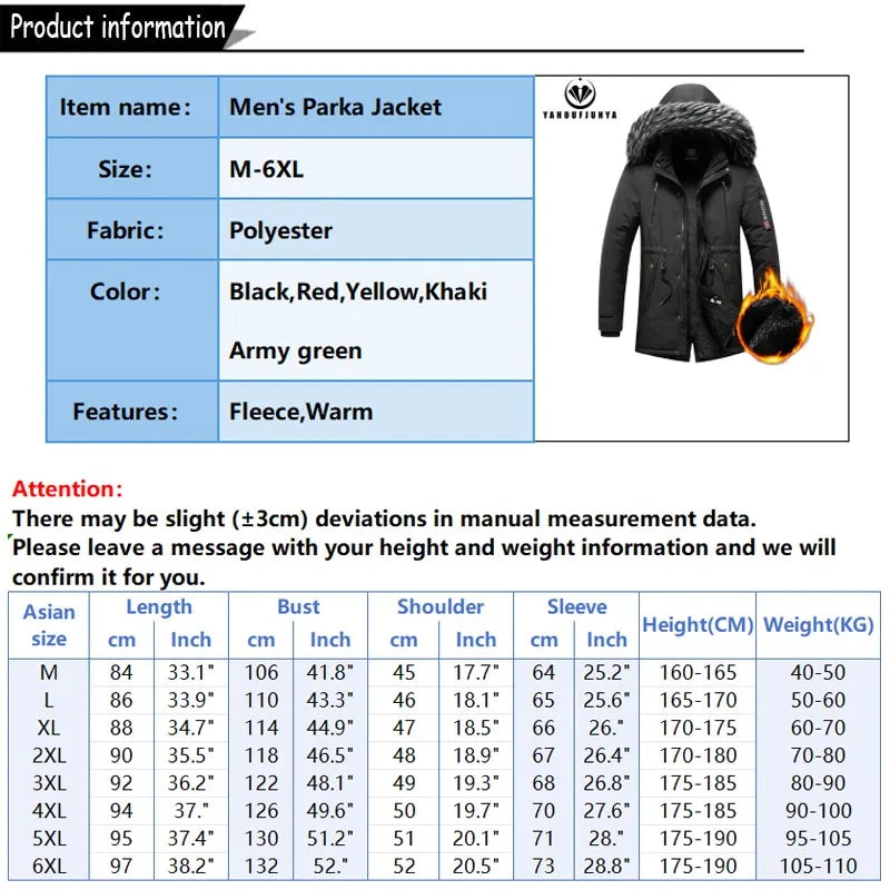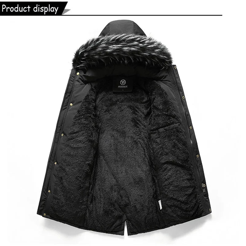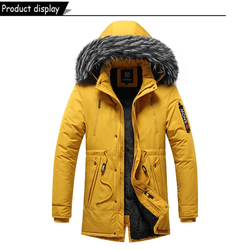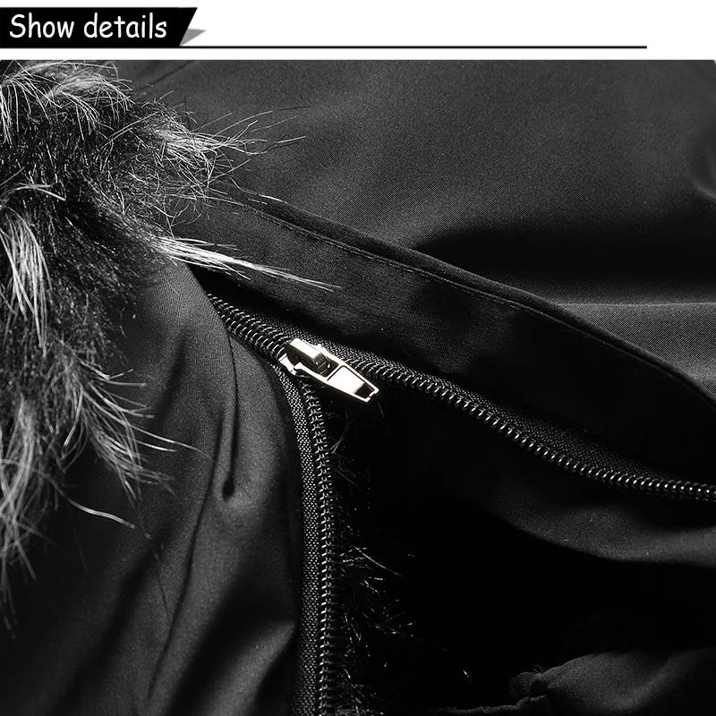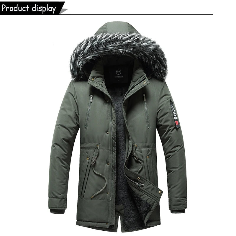 Men's Windproof Fleece Warm Detachable Hooded Parka Winter Jacket Solid Zipper Coat 6XL